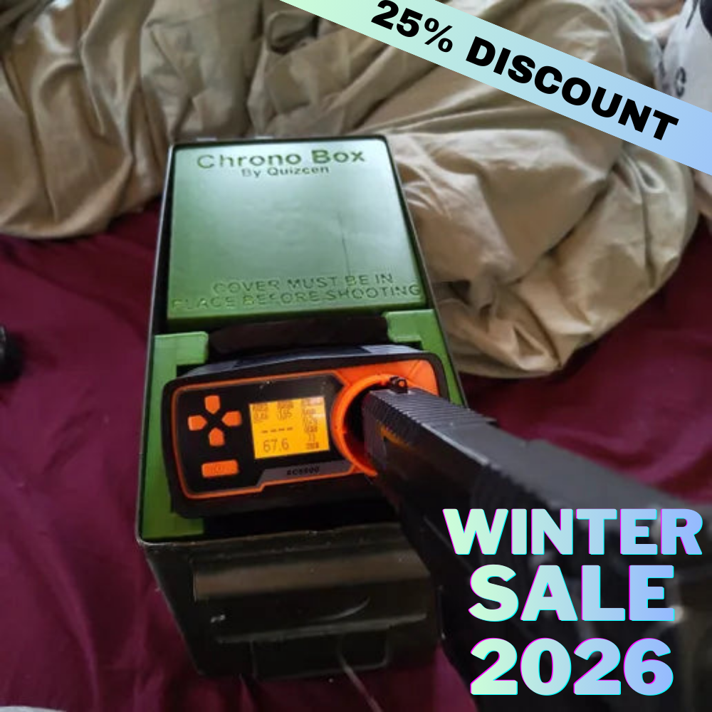 Designed to fit the AceTech AC5000 perfectly inside a standard ammo box with internal dimensions: 280×142×175 mm. Makes it simple to chrono and test your setup indoors without BBs flying everywhere.